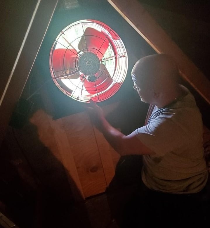 After: The New Fan is Installed and the Square Gable Vent Cover Adjusts Automatically as the Gable Fan Operates